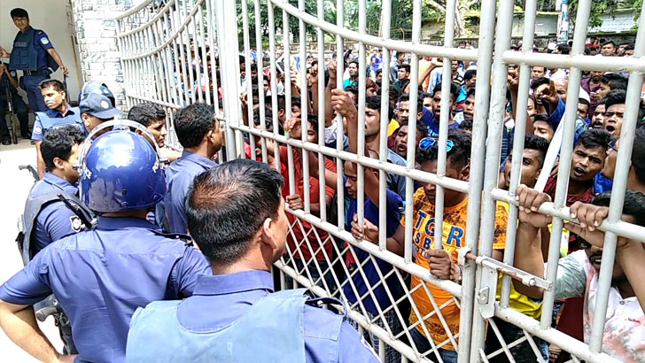 এরই প্রতিবাদে বুধবার সকালে জেলা স্কুল মোড়ে কোতোয়ালি মডেল থানায় গিয়ে বিক্ষোভ করলে পুলিশ বাধা দেয়। এ সময় পুলিশ গুলিও করেছে। এতে ৫ পুলিশসহ ১৫ শিক্ষার্থী আহত হয়েছেন। তাদের ময়মনসিংহ মেডিকেল কলেজ হাসপাতালে ভর্তি করা হয়েছে।